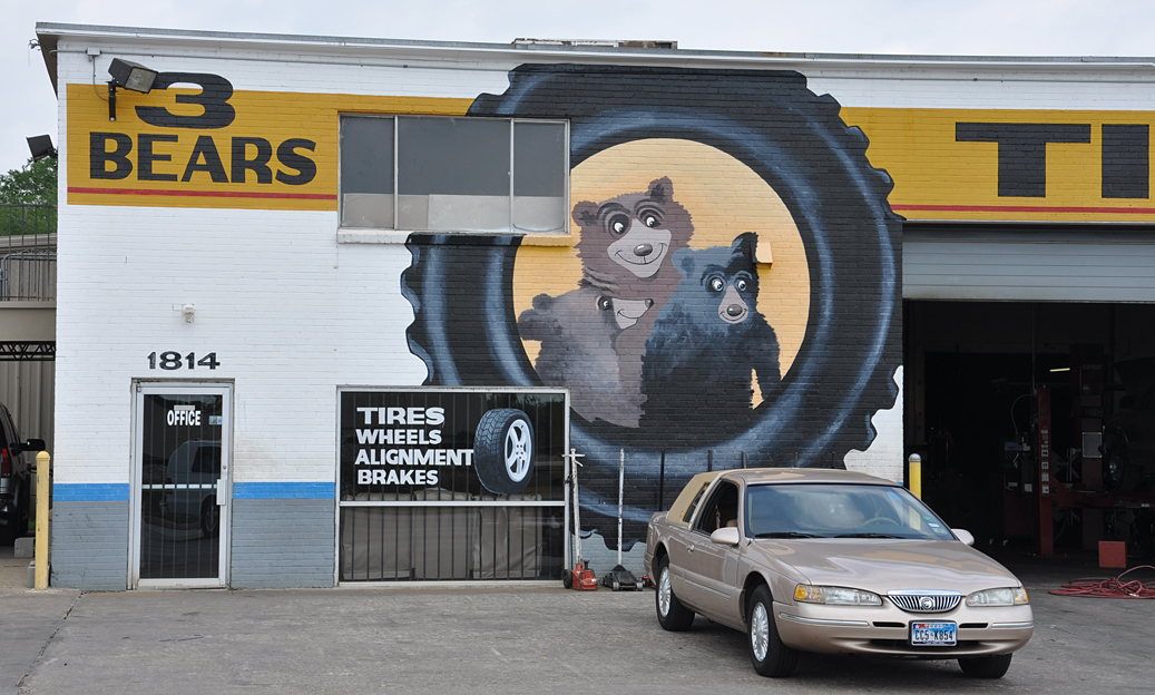 A couple more from Grand Prairie. Very nice hand-painted sign for a tire shop: