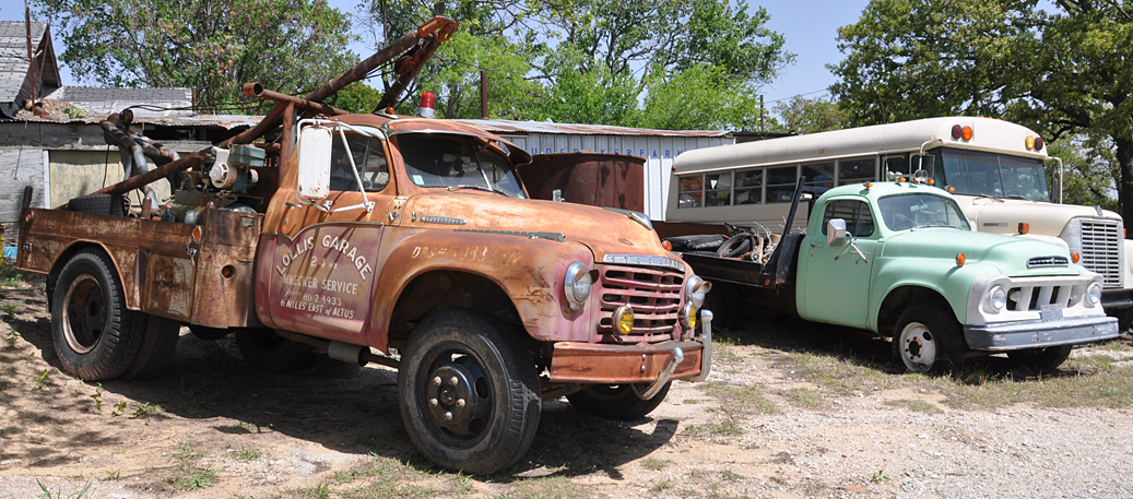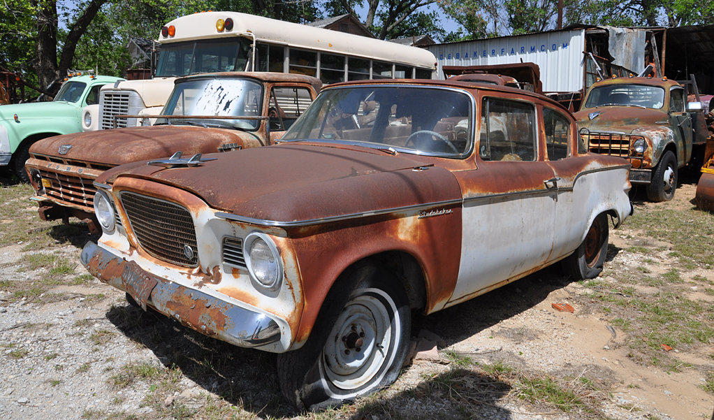 and under the sign, a number of Studebaker vehicles. Just as nice rusty as they are restored: