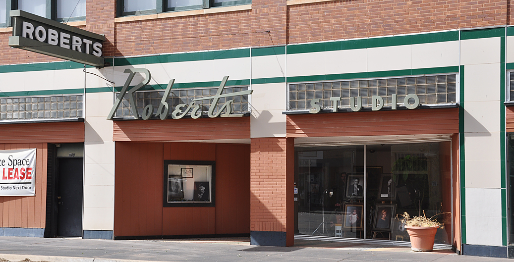 From some Googling, it seems this place (now vacant) was a draperies & curtains store. Although maybe it was something else before that. What could that cylindrical tower have been used for?