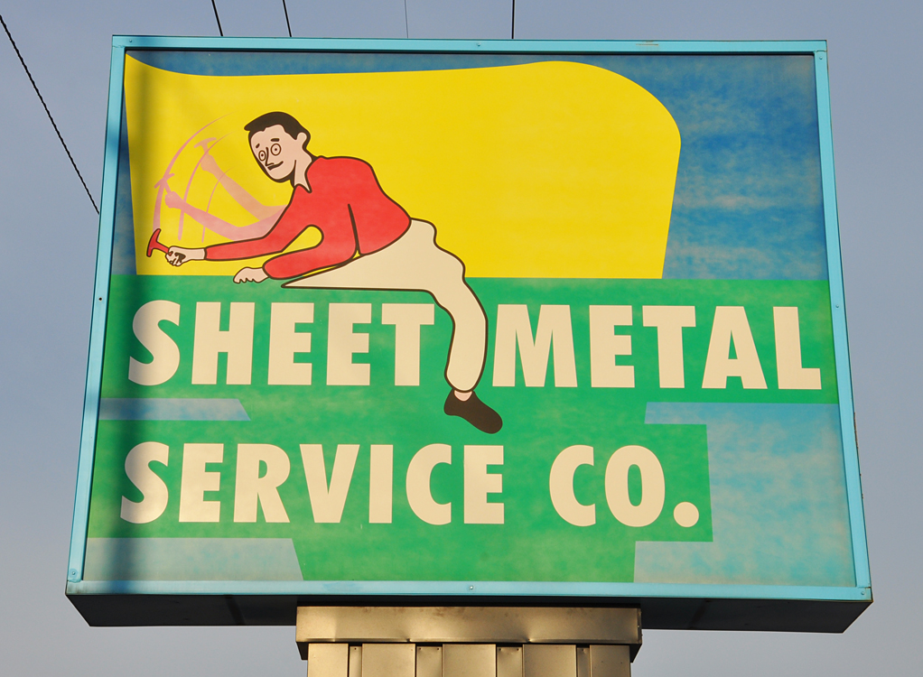 One last sign for this post and then I’ll start whipping up some photos from today. Just a couple of doors down from the Sheet Metal sign — a mysterious milk bottle & glass sign. I don’t think there’s a business affiliated with this sign anymore — so go see & shoot it now while it’s still around: