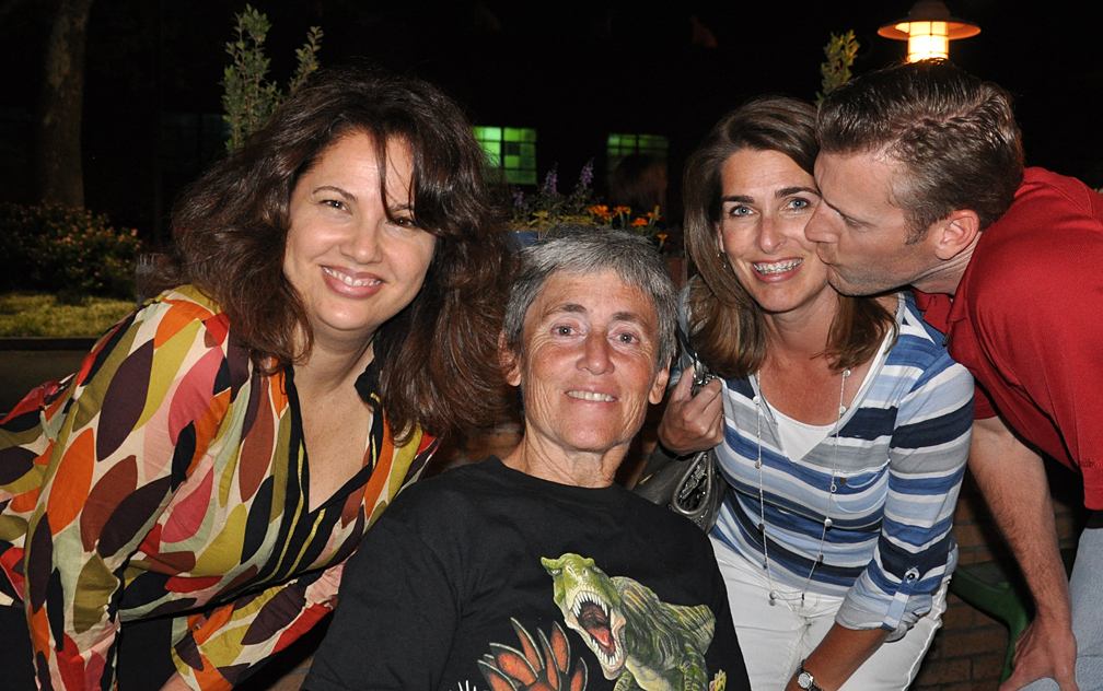 That’s Lynne on the left and a couple of her pals on the right (her hubby was taking the photo). Me, second from left, modeling a dinosaur t-shirt that I scored in Glen Rose, TX on this trip: