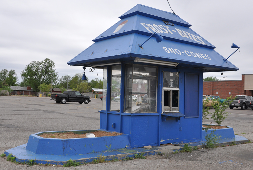 A forlorn, former Fotomat (film developing drive-thru store for those of you too young to remember). The windows are broken. I don’t think anything good or bad will happen with this one any time soon. Not exactly an area being overrun with new development.
