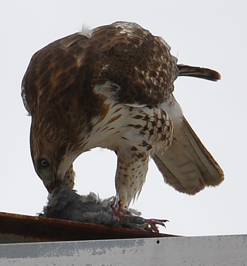 But after a couple of minutes, I realized he/she had some poor animal up there. Maybe a pigeon?