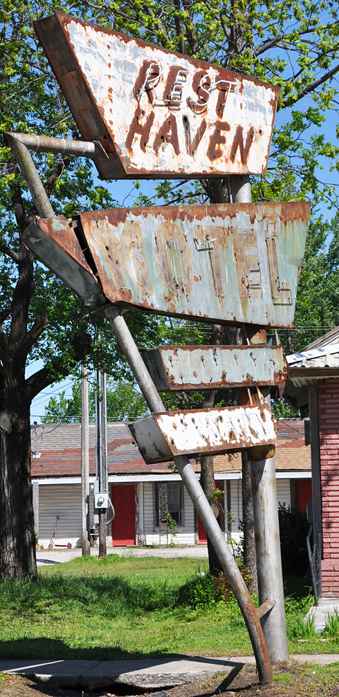 A couple of Route 66 relics from Afton. Nice to see these 3 cabins & sign are still standing: