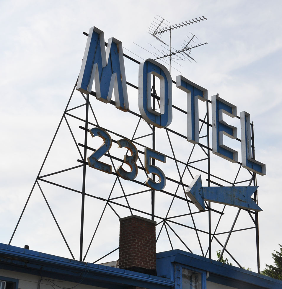 Let’s wrap up with a couple more signs. This one at the Worcester City Motel in Shrewsbury, MA. The “265” refers to its address at 265 Boston Turnpike. The sun behind it forced me to shoot at this angle: