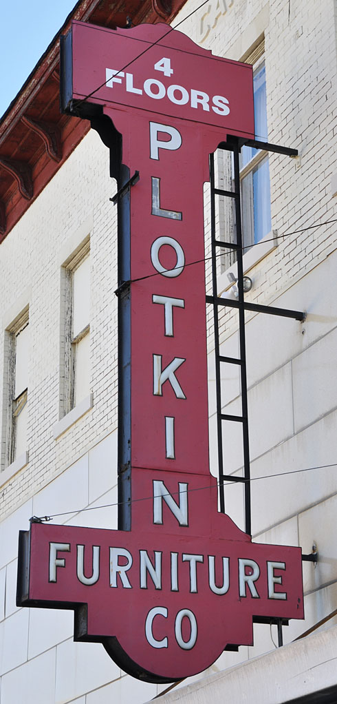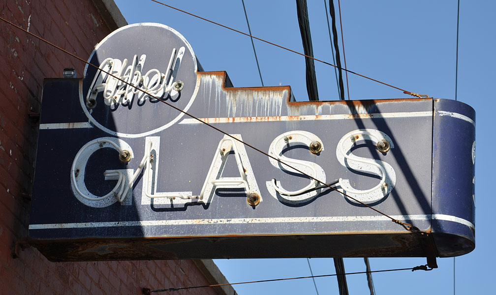 Let’s start in little old Athol. Plotkin Furniture has been in this building since 1958. This sign must have come from their previous location. The style of the sign is very 1920s. The company was founded in 1919. The opal glass is still lit at night when the store is open. The missing letter replacements are supposedly translucent. The top of the sign originally read “Glendale Ranges”. There were curlicue details at the top and in the little corners which have been painted over. But the really impressive thing is that this place is still open! Most businesses with these opal glass signs (and there are very few of them) are long-gone, replaced with thrift stores and such, or are just plain vacant.