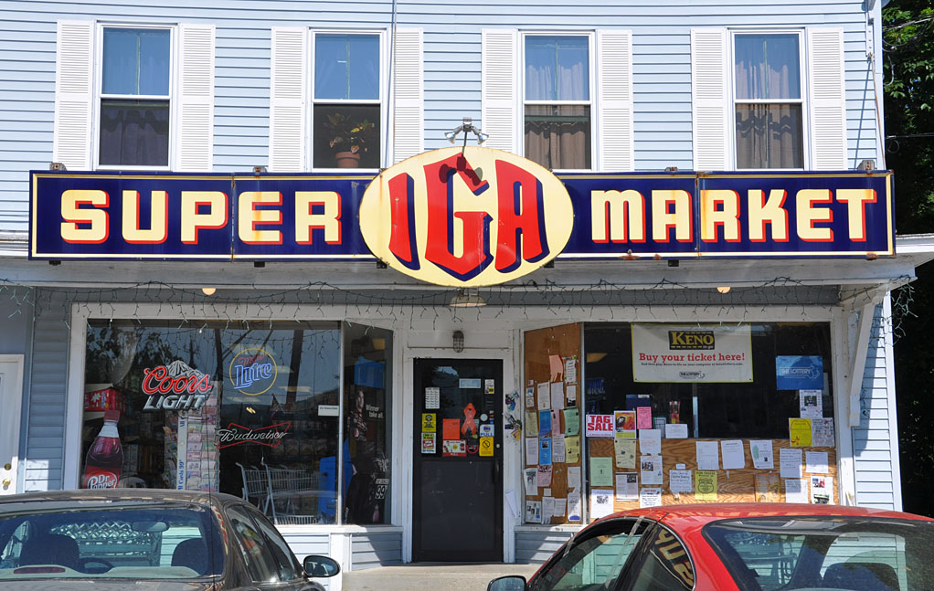 A surviving supermarket in Northfield. This porcelain enamel sign was mass-produced but they are very rare now. I only know of a couple other IGA signs like this one and neither of them are at still-operating stores.