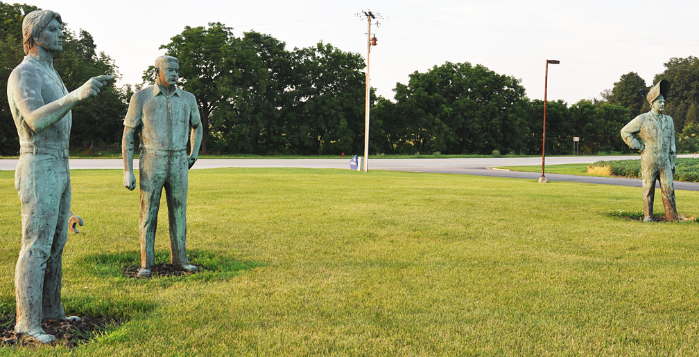 A head-turner sculpture in Cassopolis. The statues are just shy of life-sized. “The Builders” is at K&M Machine Fabricating: