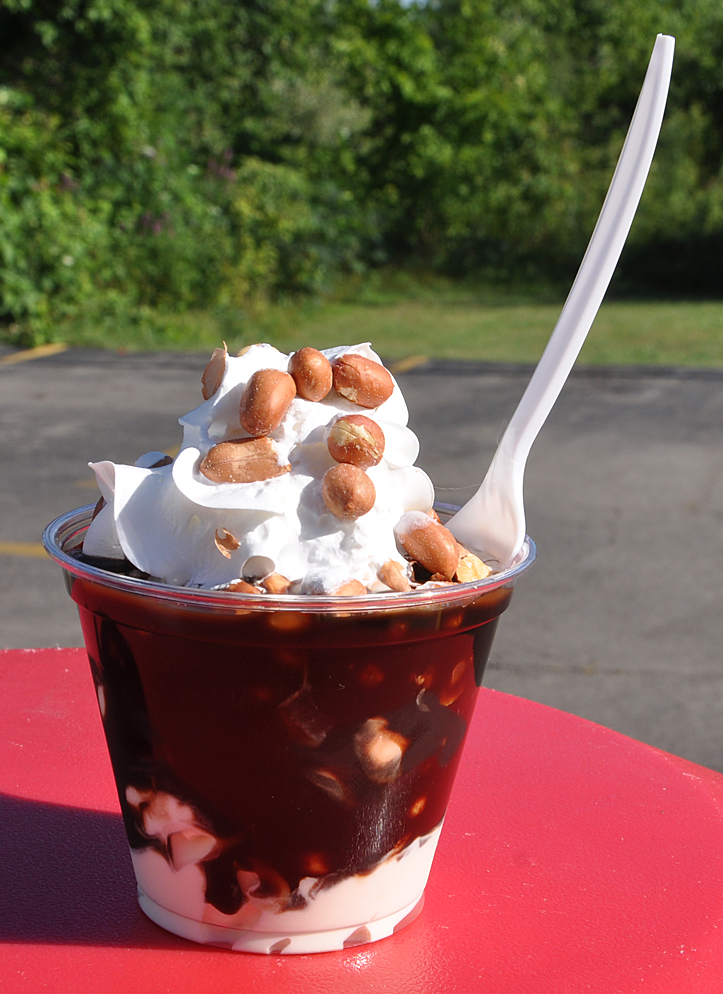 Afternoon heat wave relief. From Armstrong’s Funland in Belleville — a sweet little mini golf place. This “Tin Roof” was fantastic. But how do you go wrong with these basic ingredients (soft serve vanilla, choc. syrup, whipped cream and Spanish peanuts).