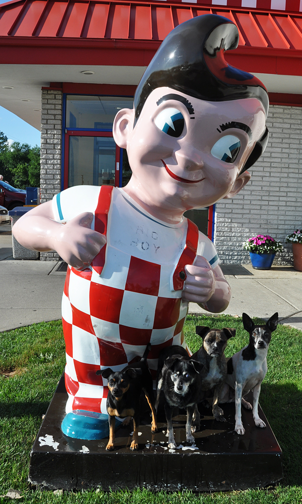 Let’s start off with a shot of “the kids”. They look so serious don’t they? They’re staring at their new favorite treat: Speedway gas station sausage. You know, the kind that spins on those metal pipes all day long. This is the Big Boy in Livonia — with, left to right, Grem, Grip, Fix & Nik: