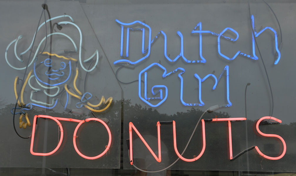 Skeleton window sign at The Dutch Girl Donut Company. Yes, I tried a couple. I recommend the raisin donut — major sugar rush: