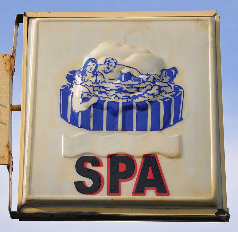 A tacker-on-er sign to the Flamingo Motel in Fraser. The era of hot tubs and wife-swapping: