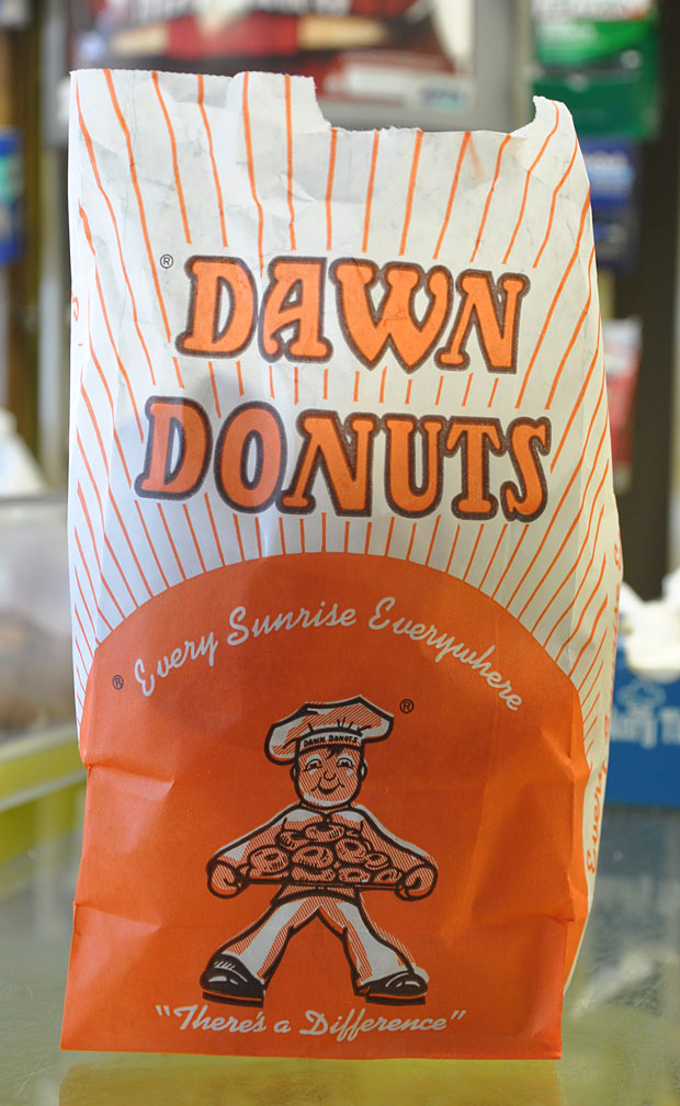 And lastly for the night — had to stock the pantry given the chance that we could break down without warning in the middle of nowhere. But I’m hoping those days are over. Still a good excuse to support the Dawn Donuts in Flint. The guy at the counter told me the bags cost 10 cents each to print. I posted the neon sign for this place over at Flickr tonight.