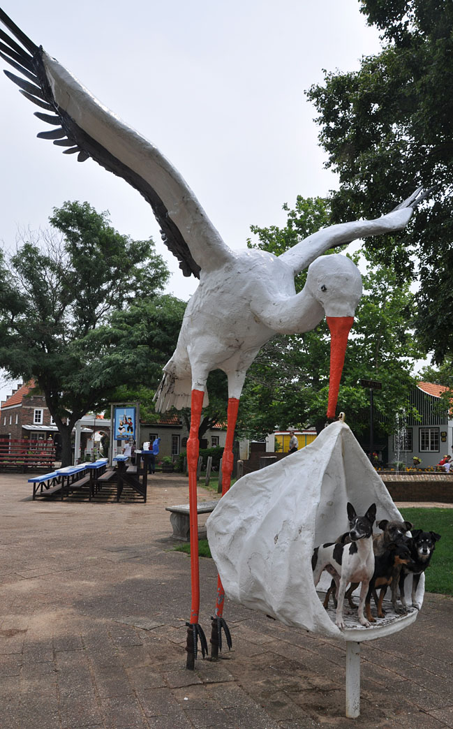 Enough Grand Rapids. Let’s move on to today’s big event. I’ve always been too cheap to splurge the $10 to shoot the carousel & stork statue at this place — the Dutch Village in Holland. Today was the day. I realized the stork would make a great photo-op for the dogs & remembered that the desk person had said dogs were welcome. So… bad move. Maybe one of the 10 stupidest things I’ve done in my life. I did notice there were ducks and geese around but figured I could just make things quick — take a few shots and get the hell out of there. My dogs have a solid “stay”. I got two photos and then… well, pandemonium. This idyllic little fantasy of a family theme park turned ugly. Luckily, just about everybody was in the center of the place learning to clog dance or something.