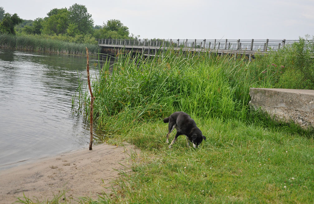 Let’s wrap up this post with some doggie pix from the river between Montague & Whitehall. A perfect combination of grass and water — and nobody else around: