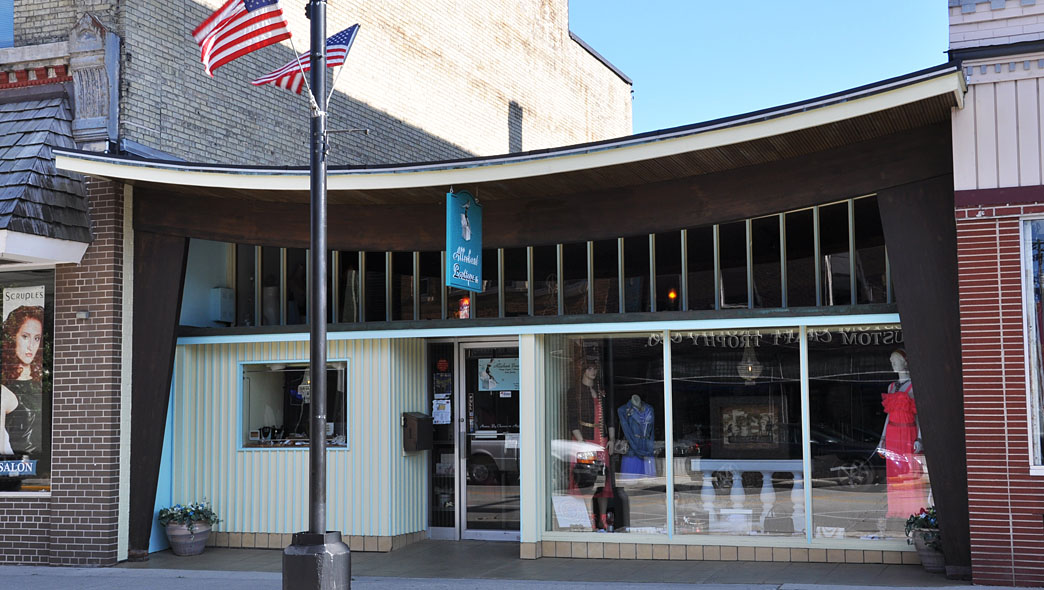 From Plymouth. A swoopy break from all that monotonous turn-of-the-century downtown brick. I’m assuming it’s 1960s.
