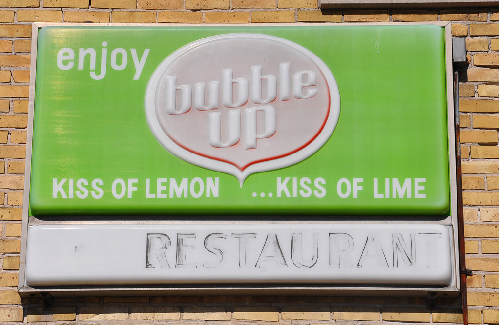 Also Manitowoc. I’ve never seen a Bubble Up sign before — though I certainly remember drinking the stuff: