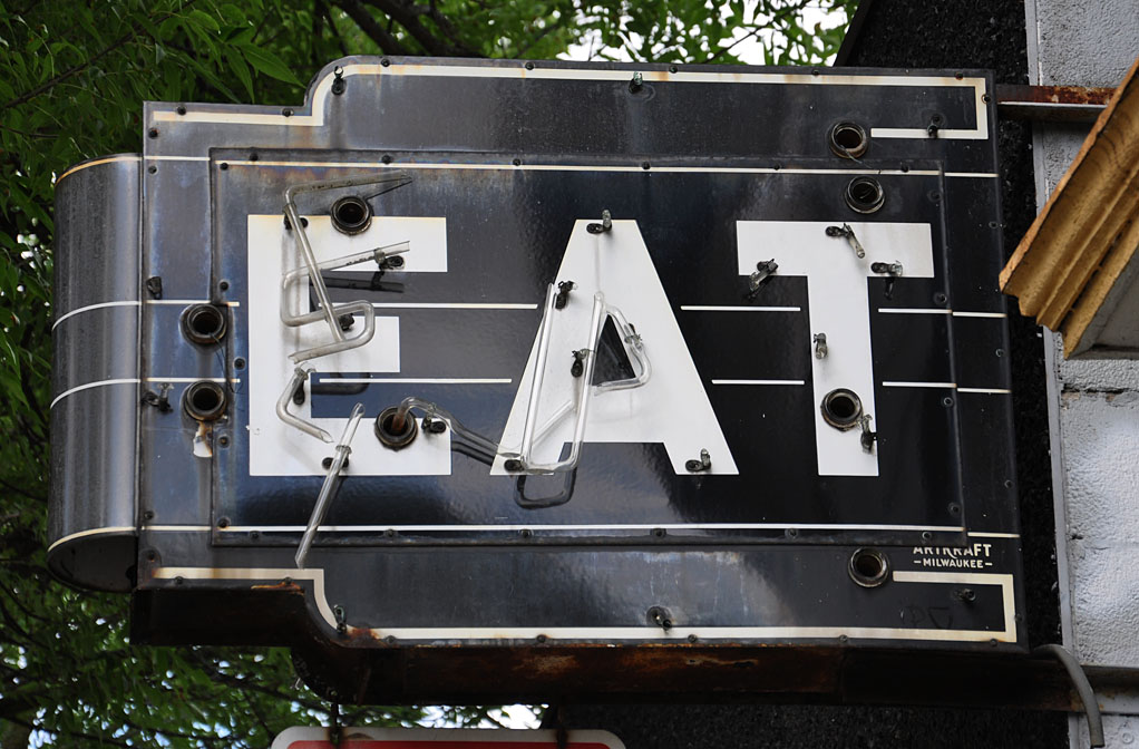 One more from Madison — a hard to shoot rooftop sign. The restaurant opened in 1954 and I assume this sign is from then: