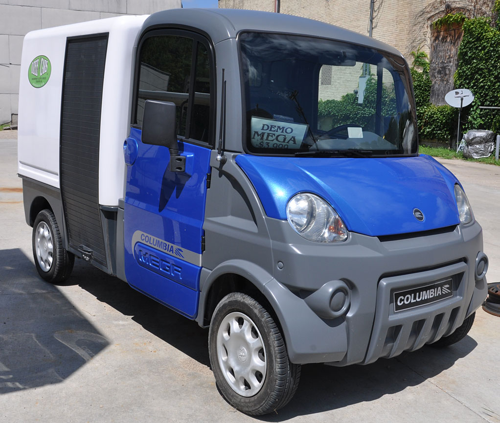 At a small electric car dealership in Stoughton. I love this little van. Not that it would be very practical for me for long roadtrips. Poking around on-line — I think they’re made in England. There’s also a pickup and a few other versions and a car with similar styling.