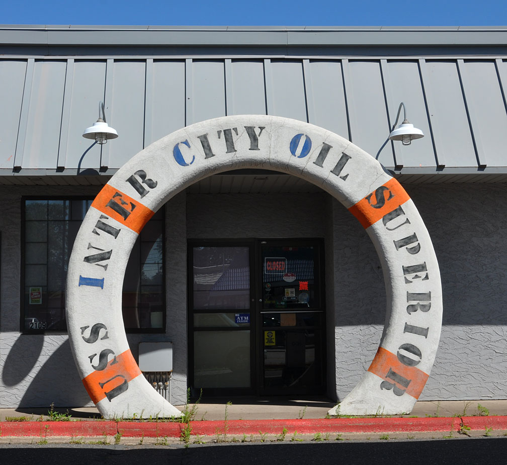 Lots of ICO gas stations around these parts — a new brand to me. Nothing remarkable about their stations but I liked this life-preserver entrance. This station’s closed though — so this will probably be gone soon: