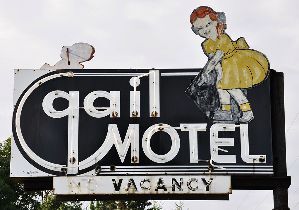 Gail is looking a bit faded at this point. In fact, she appears to be a tack-on to the sign. Maybe a replacement of a similar figure or covering up a symbol or word?