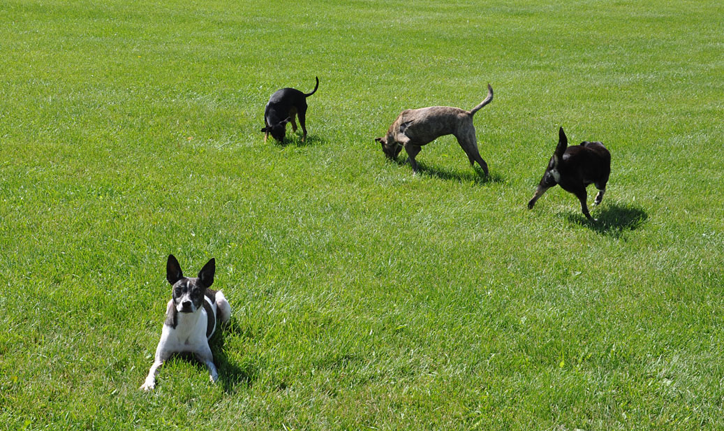 Just one of a dozen or two doggie breaks. Something wonderful in the grass — I don’t know what. But Nik is always just a waiting for the ballies to be thrown: