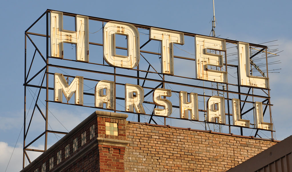 The morning started in Marshall — so here’s a couple of shots from the big hotel which, sadly, has been boarded up for years: