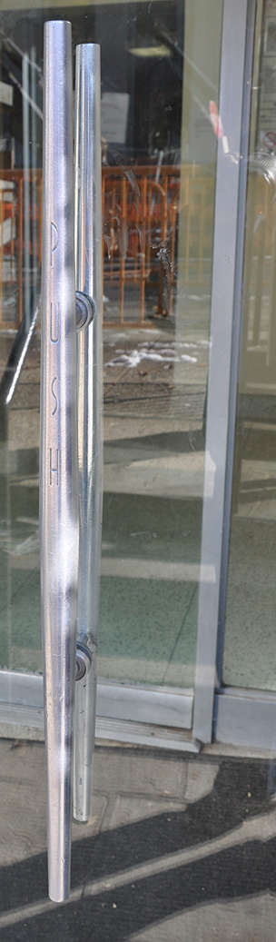 Although my building has sort of a streamline look, all the records I’ve found say 1961. The entrance door pulls certainly fit the era: