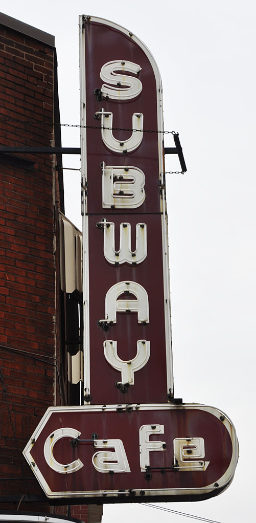 The Subway Cafe opened in 1948 and this sign appears to be from then. I don’t think there is or was ever a subway in Harrisburg so I can’t explain the origin of the name. Their website shows sequentially lit lettering but I don’t know if that’s really still the case. There is one night photo at Flickr from 2010 which shows the sign fully lit.
