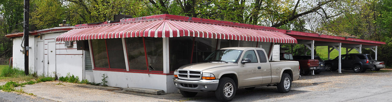 I’m always hoping for a miracle with this place in Chambersburg, PA. The Snak Shak drive-in from 1951, long closed. I fantasize that there will be car hops hopping and obnoxious 1950s music blaring when I come round the bend. But no. It just looks grimmer and grimmer. Paging Lincoln Highway Association before it’s too late. Right now, a used car dealer seems to be operating on the lot.