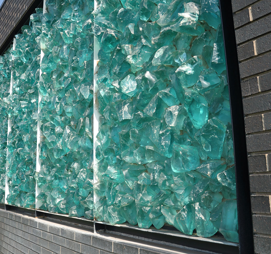 Here’s a close-up of the bank’s Goff-like glass cullet window: