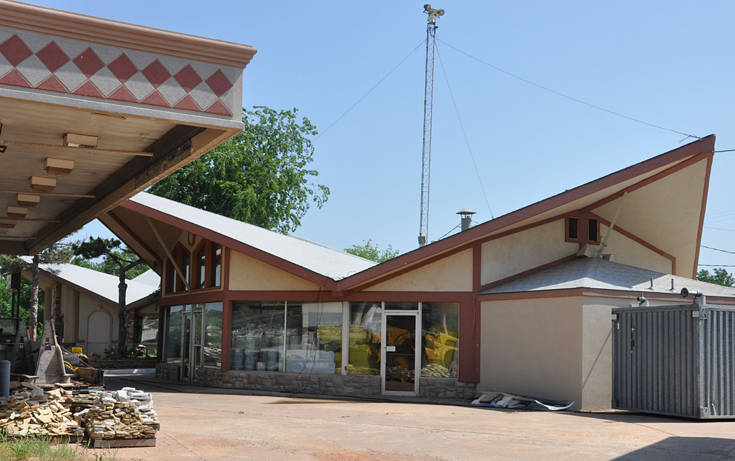 Moving on to Oklahoma City. This place on I-35, the northern edge of OKC, was built in 1963 as Truckers Village (gas, food, no lodging). Advertising claimed it was the largest truck stop in the world. Later, it housed a few other restaurants. More history and a photo of what the building looked like recently: