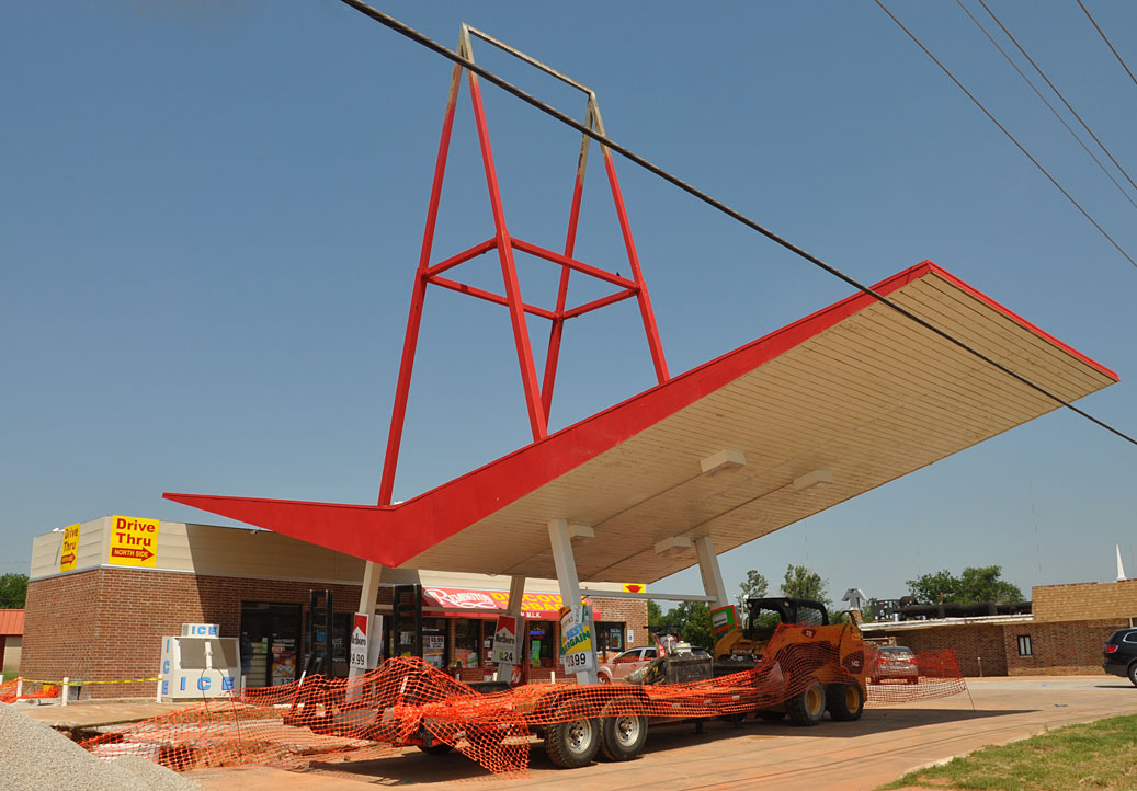 Some more good gas station news — just last April, this circa 1960 gas station canopy seemed doomed: