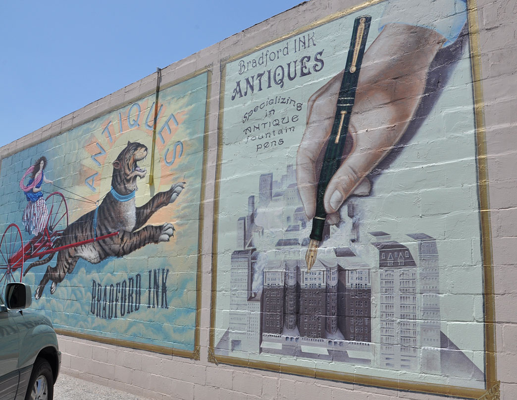 Here’s some nice modern artwork on the side of the Bradford Ink store building: