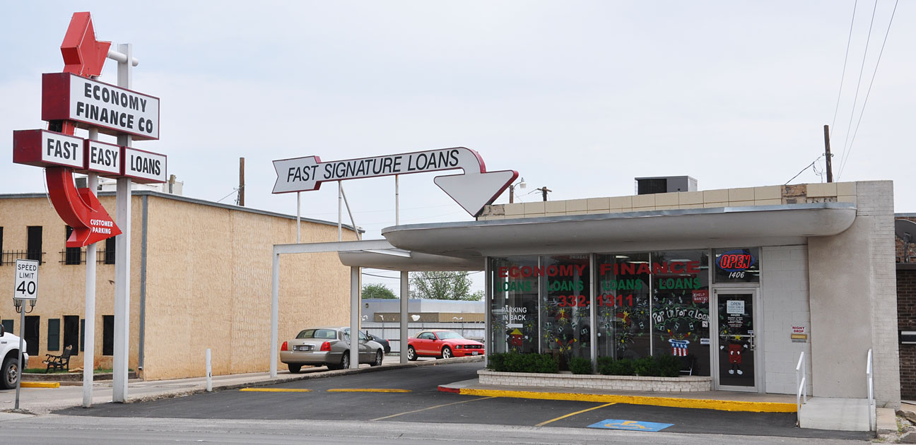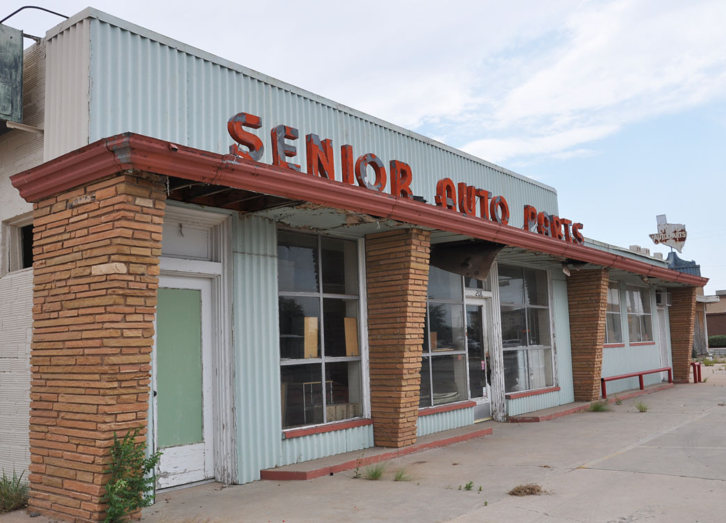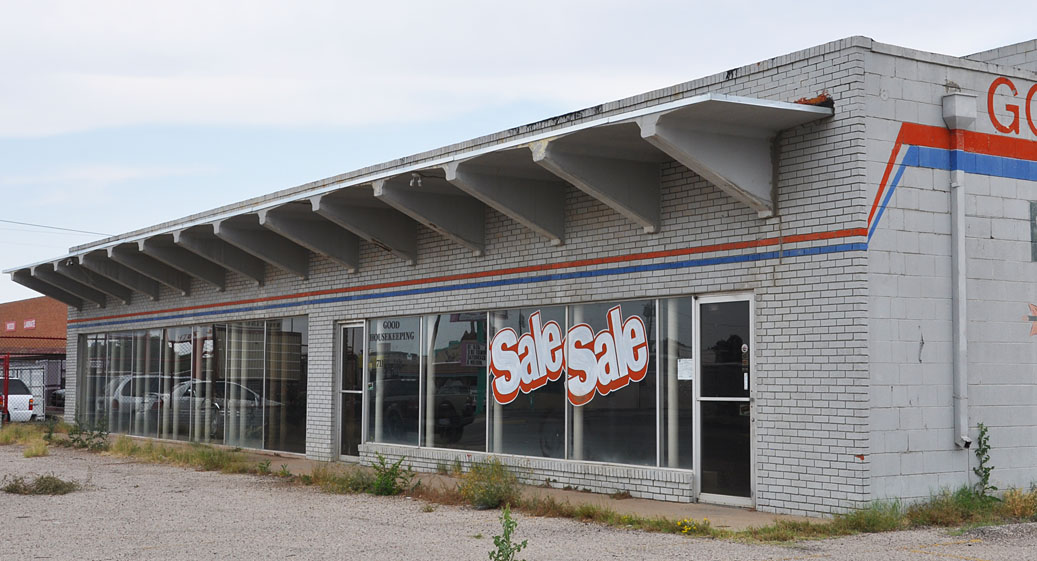 More Big Spring. I assume there was probably a neon sign originally where the corrugated plastic sign is now.