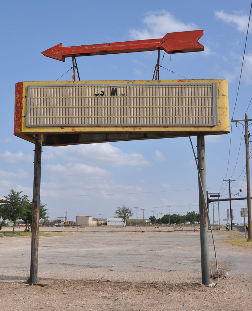 From Colorado City. Now, sun would really help provide contrast for this one. I’ll include it anyway. I’m partial to any signs that are shaped like things: