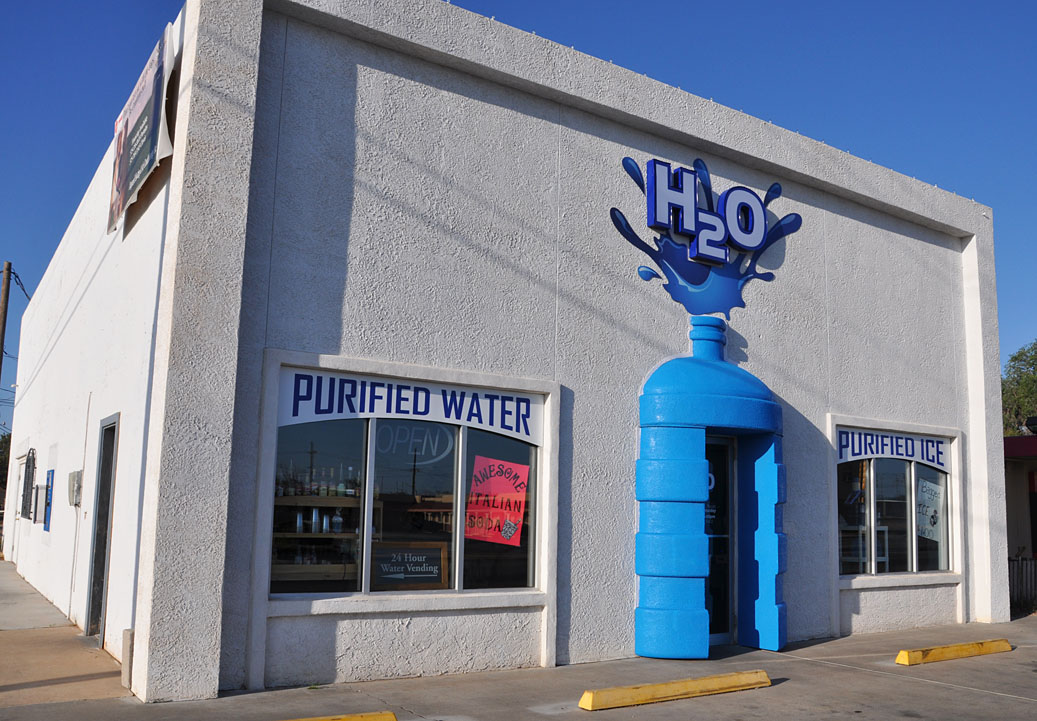 What’s with New Mexico’s water? Is it not safe to drink? Everywhere, just everywhere, there are those water vending machines and now a water store. Love the water bottle entrance: