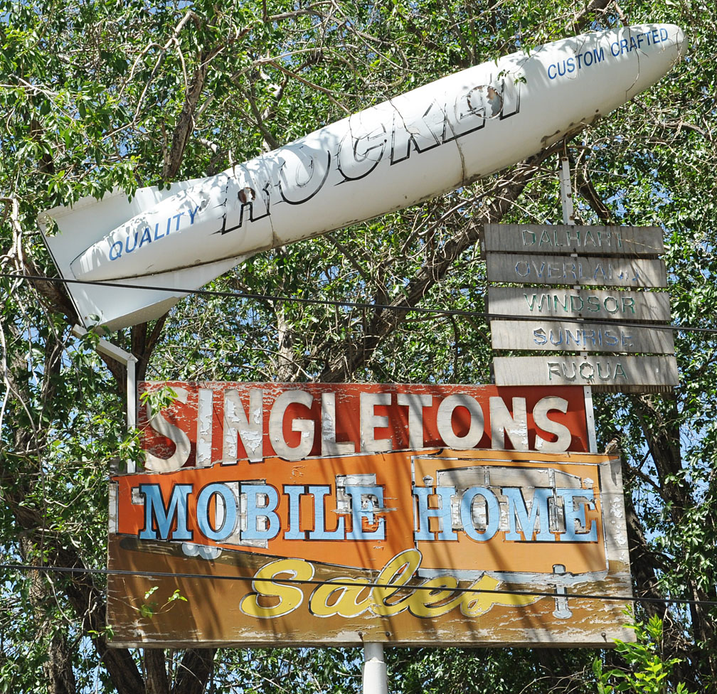 Pretty buried in the trees — not sure what a rocket has to do with mobile homes: