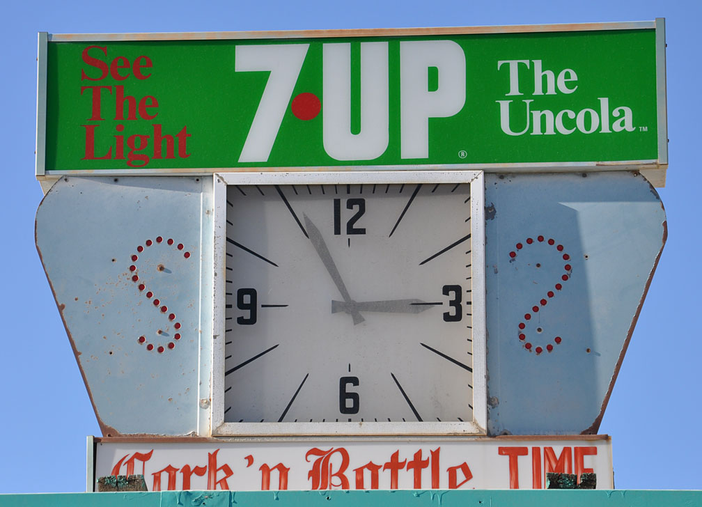 The Cork ‘n Bottle also has this rooftop sign — clock not working: