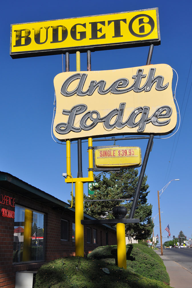 On to Farmington, NM. What appeals to me most about this sign is the neon swirlie on top: