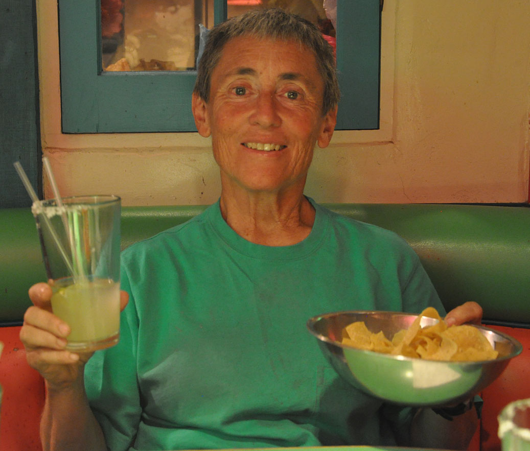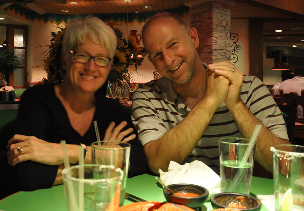 Doug is always positive and enthusiastic about my columns — actually, about everything I think. We’ve been emailing back and forth for about five or six years — but I hadn’t met him or spoken to him until last night. He’s just as wonderful in person. Doug is a better writer than I am. He’s also a hydrologist and an artist and an accomplished badminton player. We did Mexican — and here he is with his wife, Mo: