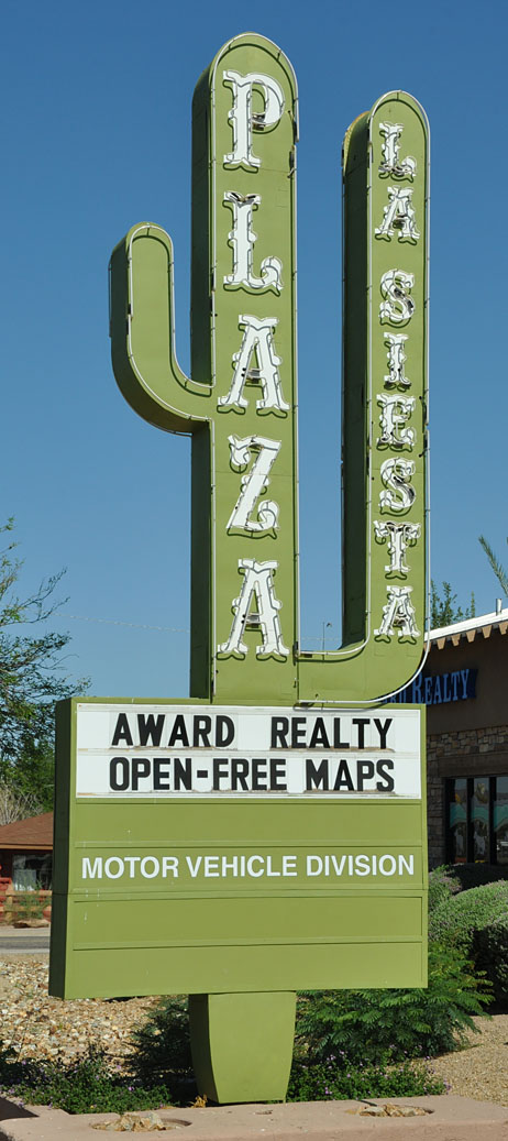 This one is from Prescott. I’m stumped as to the when/what of this one. The shape and height are very 1920s. But then there’s that modern plastic. And I love that hole that functions as the period — very mid-century. And the who-knows-when of the tacked on message board. The whole thing could’ve been done in the 1960s I suppose — they must have had “retro” signs then.