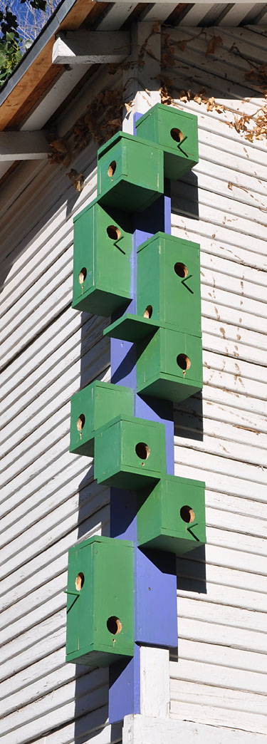 Let’s start with something completely random — a birdhouse assemblage in Bisbee: