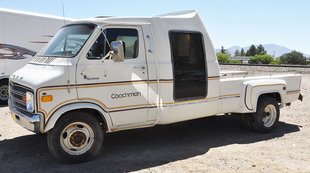 But I liked this vehicle that wasn’t in the show even more. Never seen such a thing. Could it be customized? Behind the big window is a bed-like set-up. But you’d have to be my size to fit: