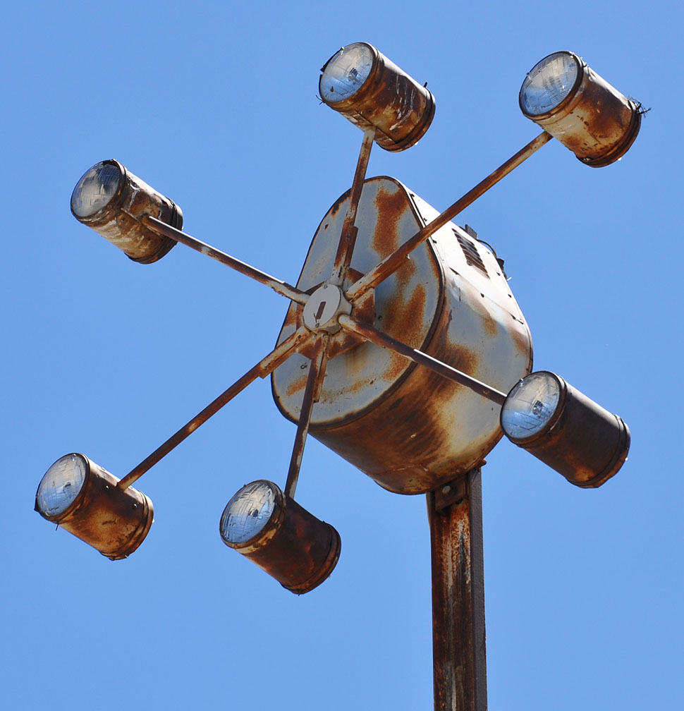One of the most intriguing signs of the whole trip to me. Never seen such a thing. Surely, the thing must have spun — and there are lights on both sides: