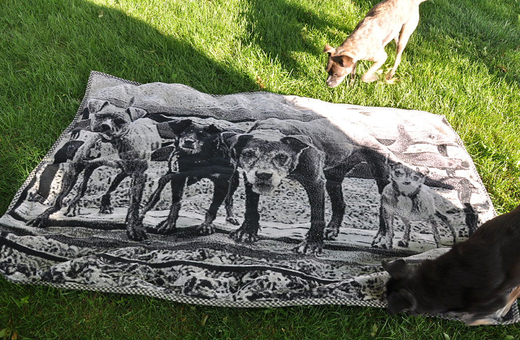 Time to to a bit of housekeeping. I thought you might like a peek at this blanket that someone ordered/bought for me years ago that I keep in the van. It was based on a photo of my previous pack: