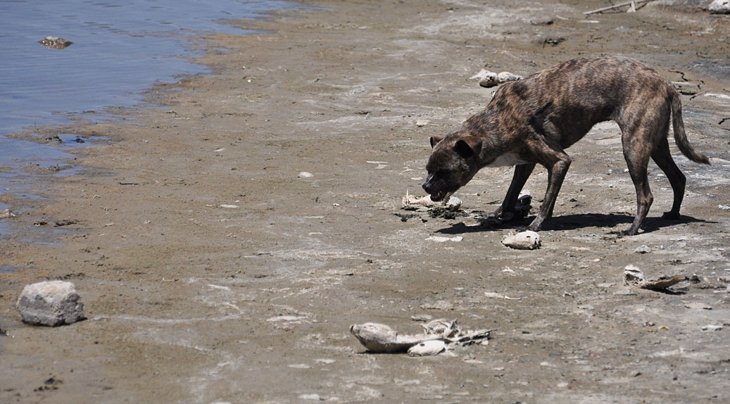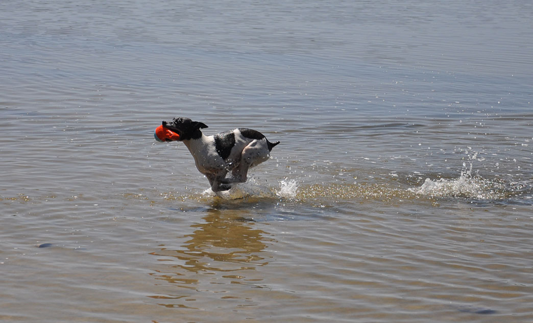 But while Grem was busy swimming for her treats, Fixie seemed to prefer chomping on the dead fish on shore. Much as I would try to stop her. Now, I don’t know how much of a health issue this is, but somebody’s been farting a lot tonight. And it’s not me — even with all those burritos I’ve been eating. I have my suspicions: