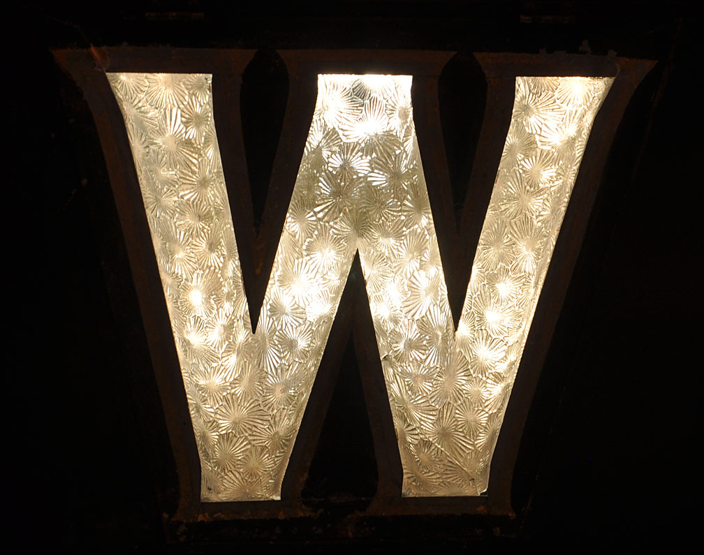 A detail shot of a textured glass backlit letter: