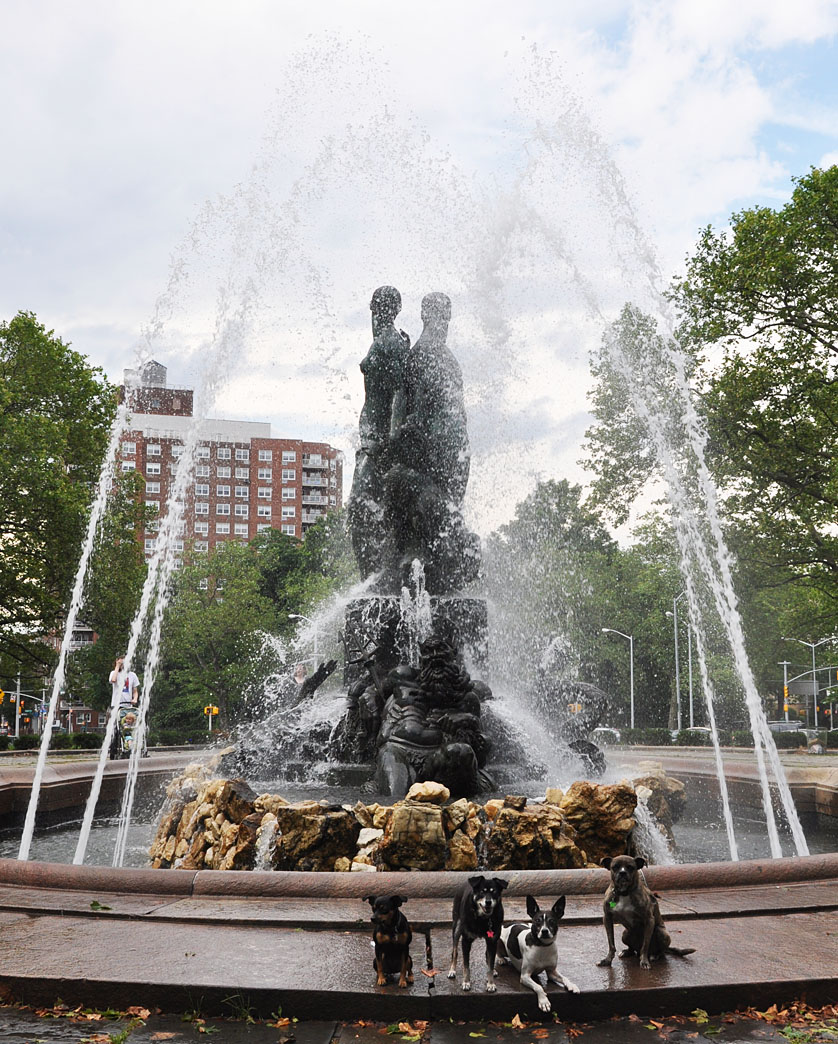 And then out for a quick stroll around our neighborhood. When we left, this fountain on the circle next to our building was still off and people were wearing winter coats. I had forgotten that it would be summer when we got home. Funny, how that happened.