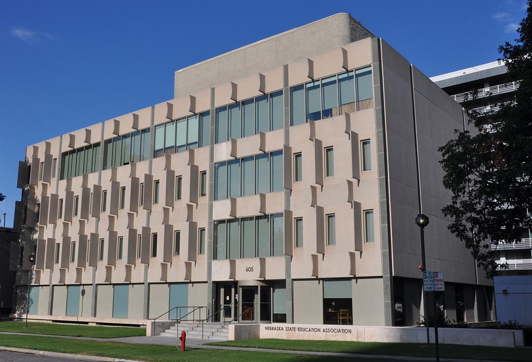 It’s nearly 1am — and I have tons of photos for you. The day started in Lincoln. Here’s a nice mid-century building that I hadn’t noticed before. Love the little fins and the asymmetrical use of glass: